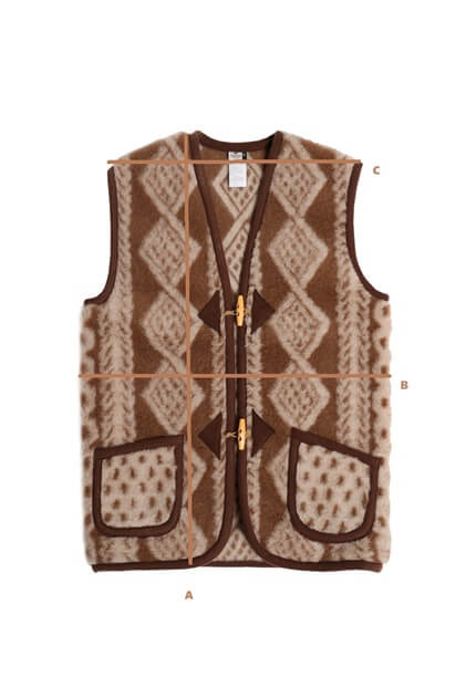 Deze bodywarmer heeft een unieke print en een houtje touwtje sluiting, gemaakt van 100% wol en is niet gevoerd.